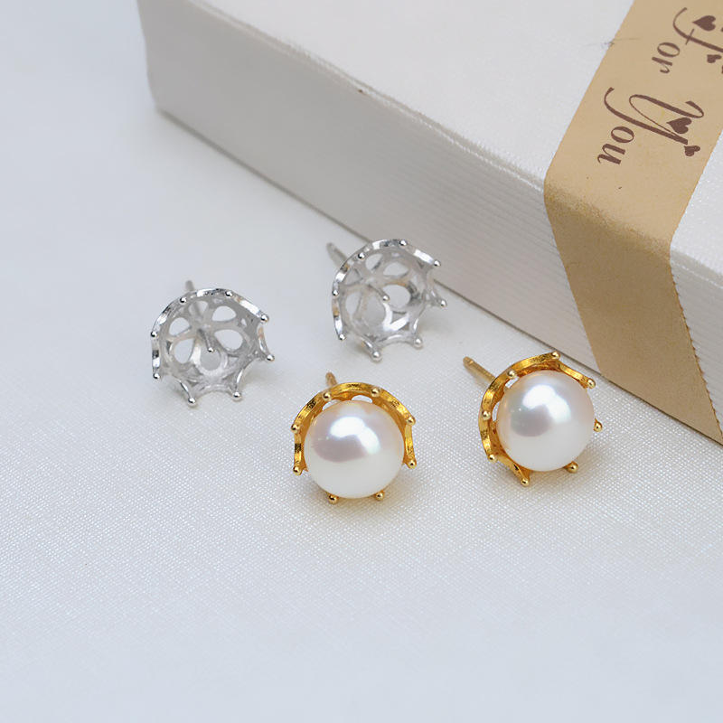 Pendientes de Plata S925 con Forma de Trébol y Perla Personalizada, Accesorios de Joyería DIY, Bandeja 1172