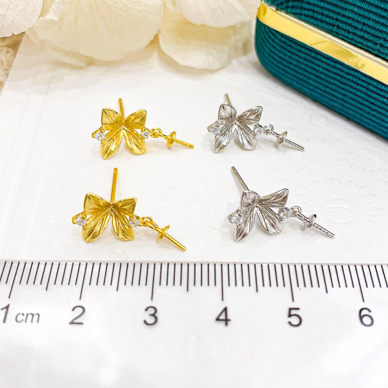 Perno de Oreja de Plata S925 con Cuentas Redondas de 8-12 mm, Accesorio de Perla para DIY, 21314 - Pequeña Flor de Ágata, Ligero y Ágil para Pendientes