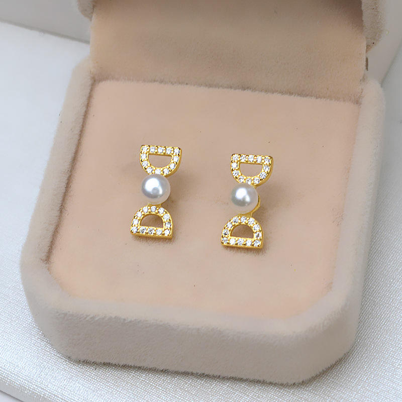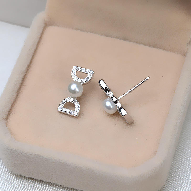 Pendientes de Plata S925, Estilo Coreano, con Perlas de 6-7 mm, Accesorios para DIY con Base Vacía, Diseño Pequeño y Simple