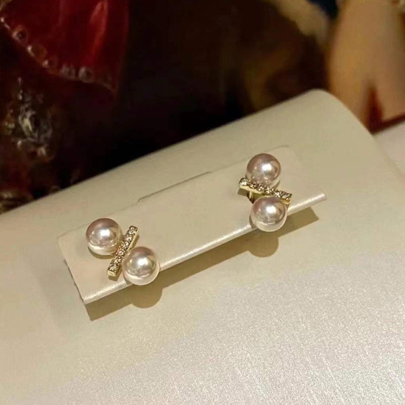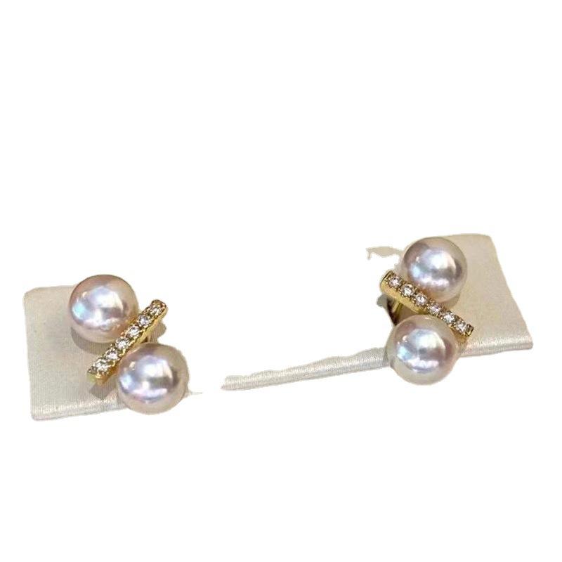 Pendientes de Plata S925, Accesorios de Perlas para DIY con Base Vacía, Pendientes de Doble Perla, Perlas Redondas de Moda de 5-6 mm, 21445