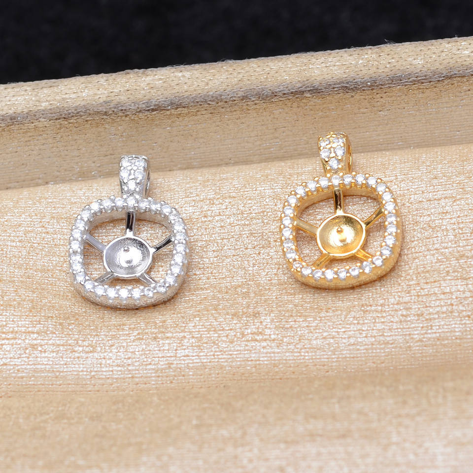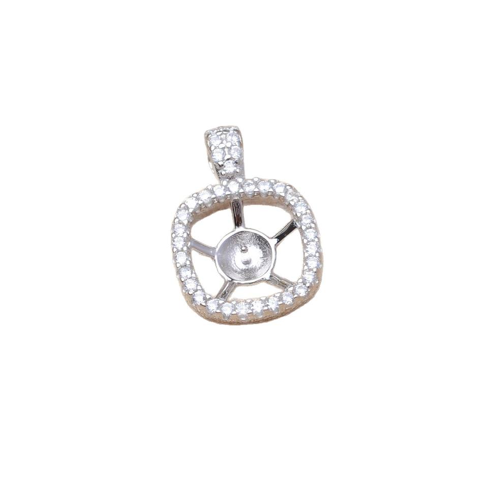 Wenchi S925 Plata Base Cuadrada Vacía para Colgante, Accesorio DIY para Joyería de Perlas A615, Componentes de Joyería, Compatible con Perlas de 7-8 mm, China