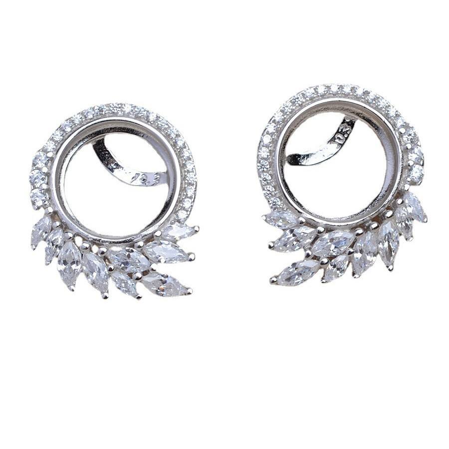 Pendientes de Plata S925 con Forma de Pestañas, Joyería con Perlas de 9-10 mm, Accesorios para el Cabello, Bandeja Vacía para Manualidades, Componentes Hechos a Mano - JG5274