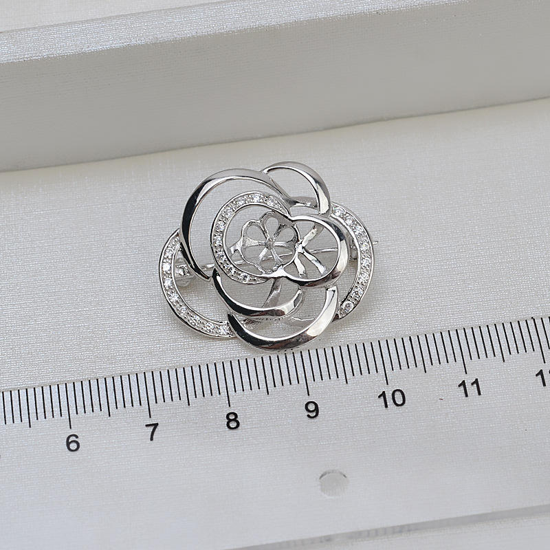 Broche de Plata S925 con Forma de Flor, Joyería Personalizada con Bandeja para Perlas Vacía, Accesorios de Decoración Elegantes
