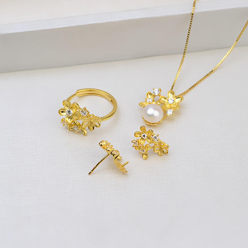 Juego de Joyería de Moda con Colgante de Plata S925 para Mujer, Anillo Abierto, Accesorios de Joyería de Perlas DIY con Pequeña Flor y Pendientes 1283