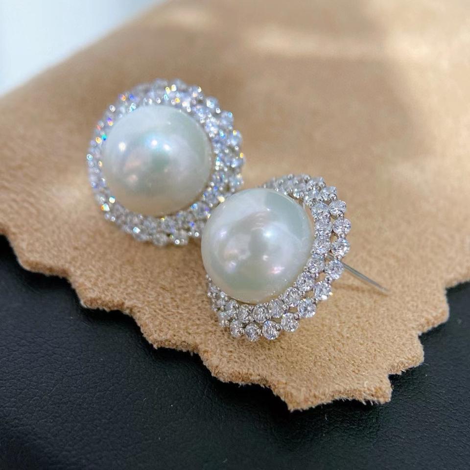 Pendientes de Botón de Plata de Ley S925, Estilo Minimalista Francés, Perla Natural de 10-11 mm con Doble Color Amarillo y Blanco, Caja de Regalo Incluida