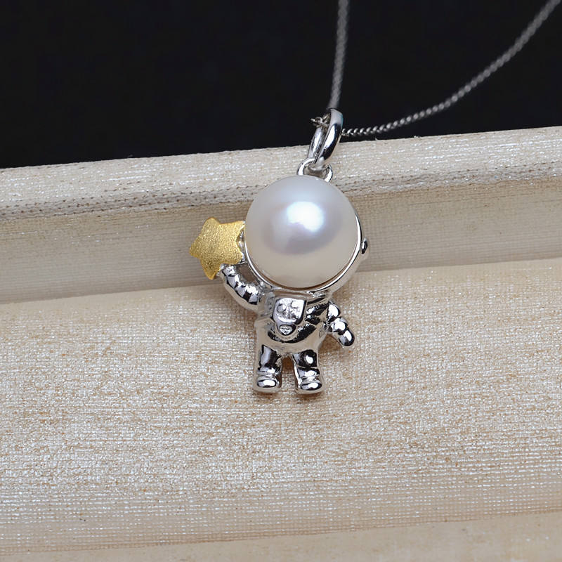 Accesorio de Plata S925 Hecho a Mano, Soporte Vacío para Perlas de 8-9 mm, Colgante de Astronauta, Serie Espacial, 4876