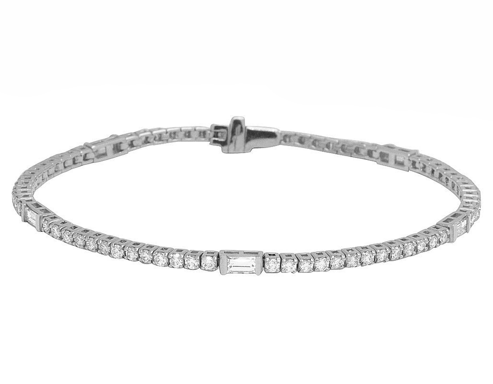 S925 plata hecha a mano Iced Out Moissanite redondo y Baguette diamante tenis pulsera para hombres mujeres joyería
