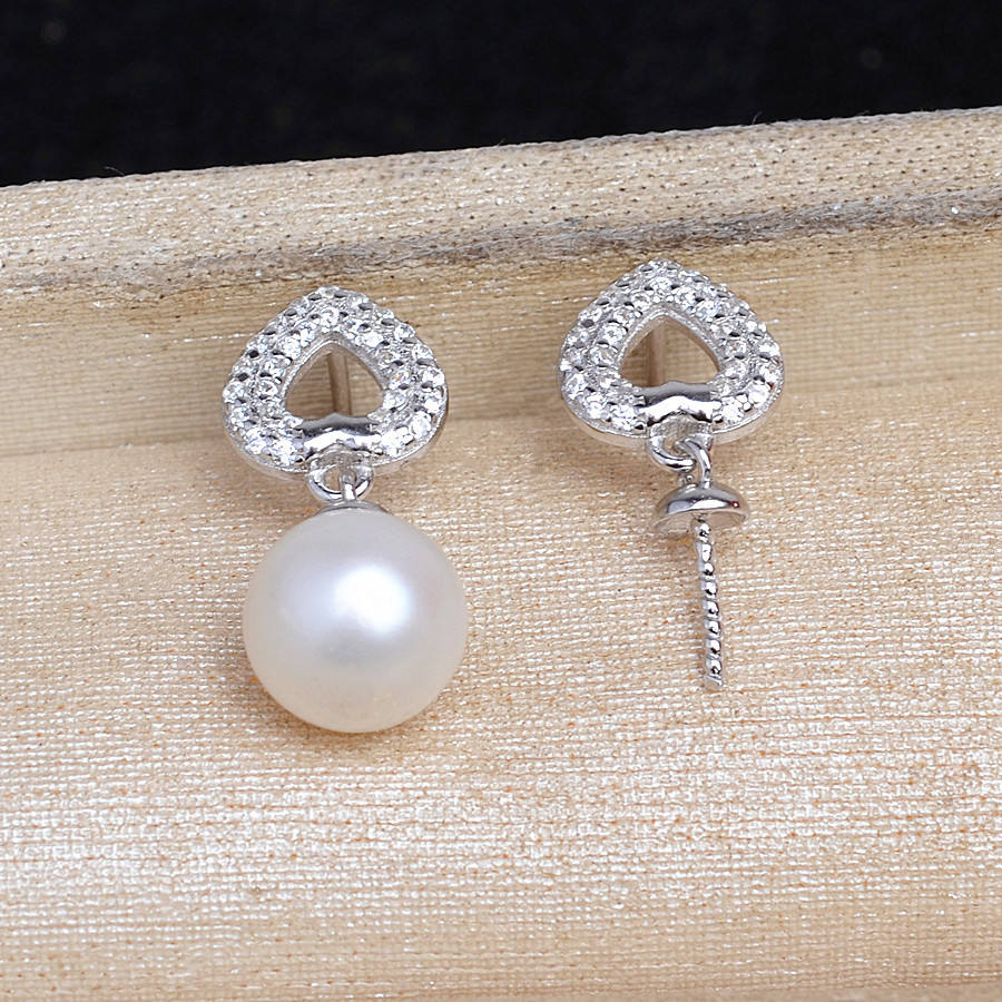 Colgante de Corazón de Plata S925 y Pendientes de Corazón de Durazno, Accesorios de Perlas DIY, Cuentas Lisas en Forma de Corazón, Base Vacía 1367