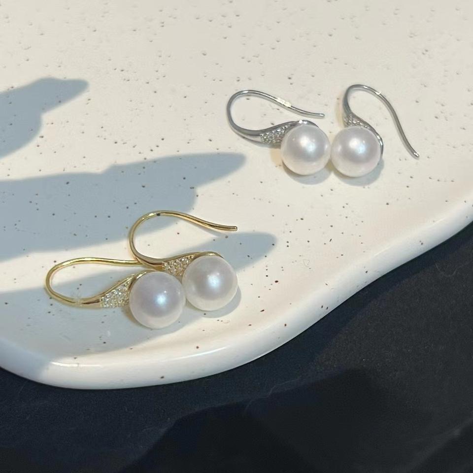 Pendientes de Plata S925 con Tacones Altos y Perlas Redondas de Agua Dulce Impecables de 7 mm, Opciones de Plata y Oro de Alta Calidad, Diseño Simple