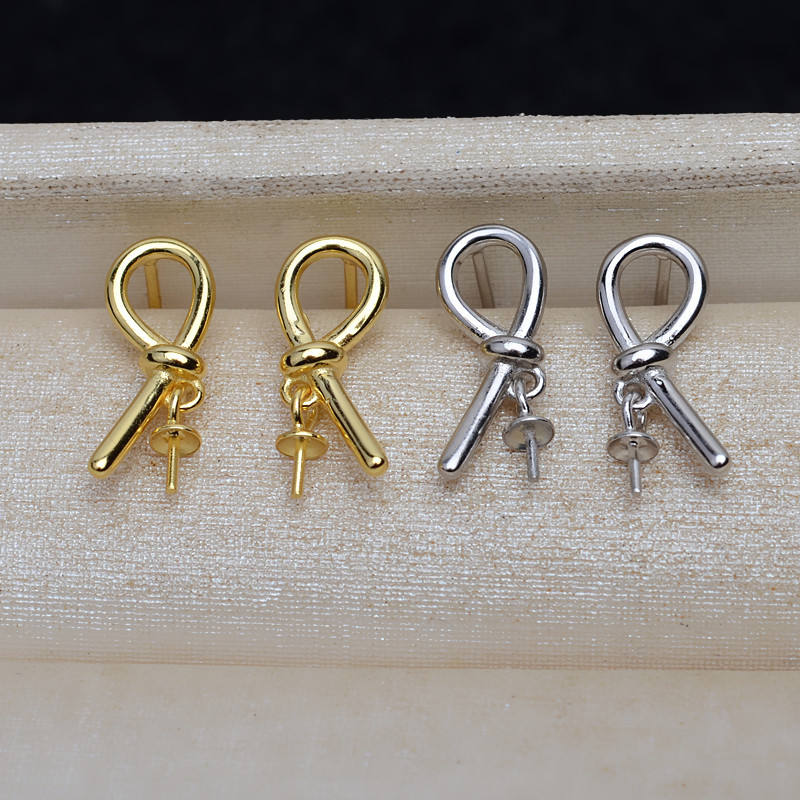 Pendientes de Plata S925 con Nudo y Perlas de Cabello Fetal de 7-12 mm, Accesorios de Joyería Hechos a Mano para Mujer, Componentes de Joyería 4018