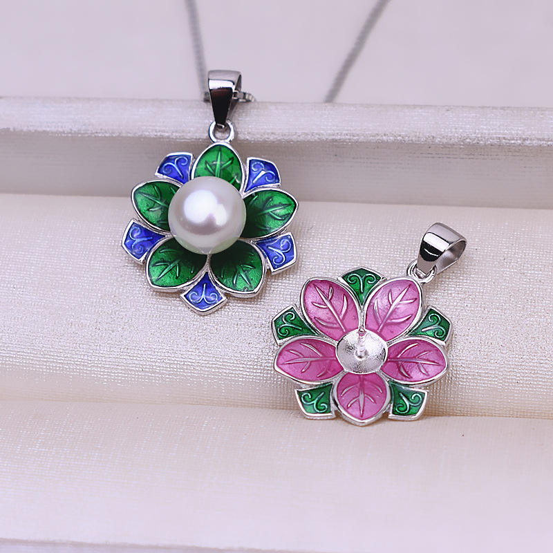 Collar de Perlas Estilo Coreano con Colgante de Loto Epoxi en Plata S925, 7-9 mm, Estilo Europeo Americano, con Accesorios de Joyería DIY y Tapas para Cuentas