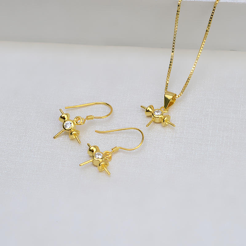 Colgante de Mickey de Plata S925, Accesorio para Collar de Mujer, Gancho para Oreja y Soporte Vacío para Perlas, Conjuntos de Joyería de Moda