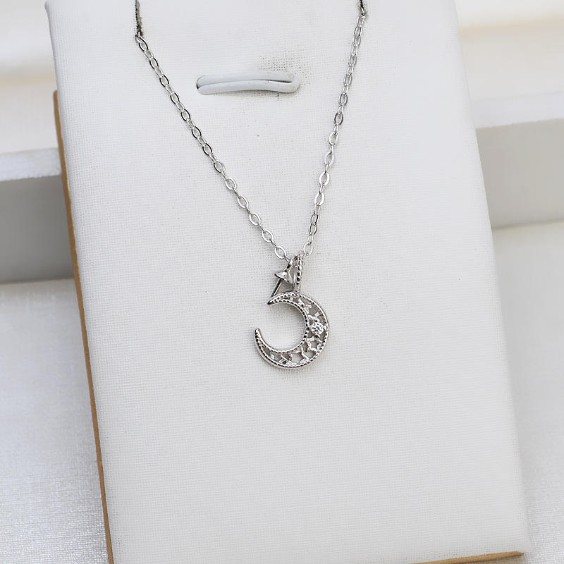 Collar con Colgante de Luna de Plata S925 para Mujer, Joyería Fina, Cadena Personalizada, Bandeja Vacía para Perlas, Semiterminado 1462, Accesorios para DIY
