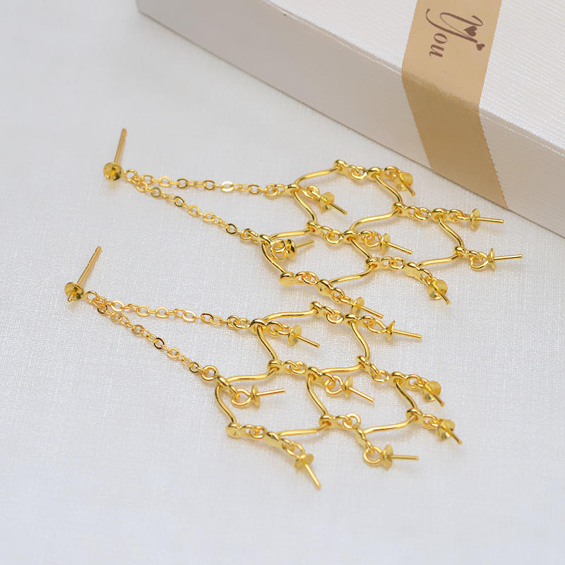 Base para Pendientes de Plata S925 con Múltiples Cuentas en Forma de Cruz, Base Vacía para Cuentas Pequeñas de 3.5-4mm, Soporte para Joyería con Perlas y Accesorios para Oreja 5391