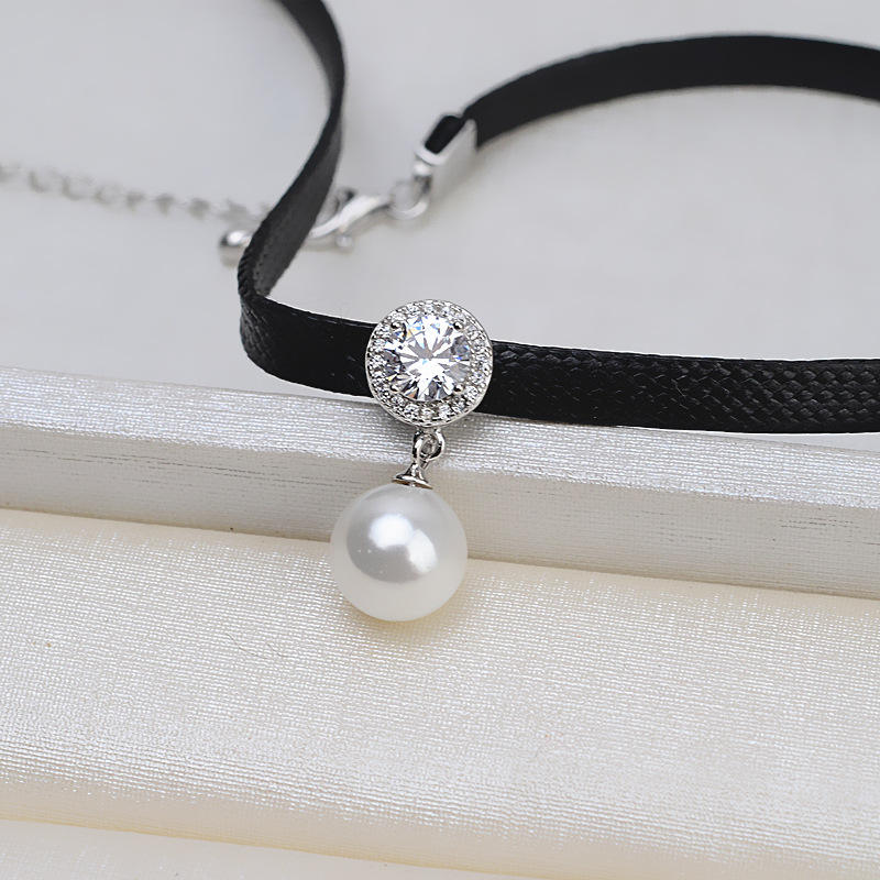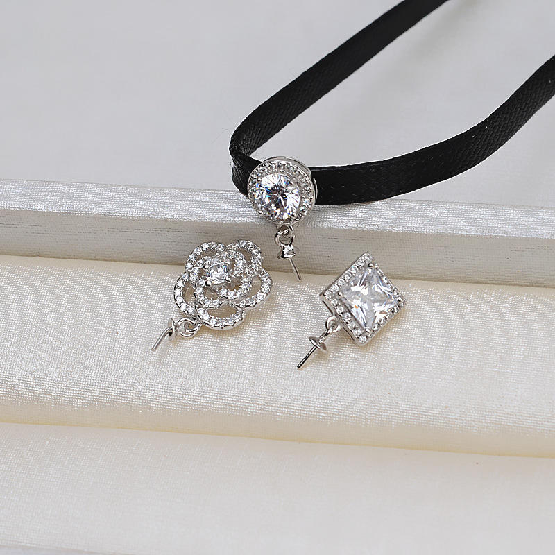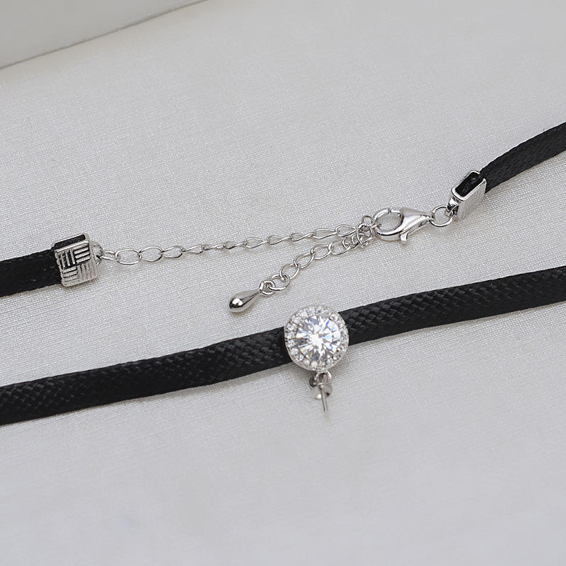 Collar de Cuerda Negra con Patrón de Plata S925 con Soporte Vacío, Cadena de Clavícula de Perlas DIY para Mujer, Accesorios de Joyería