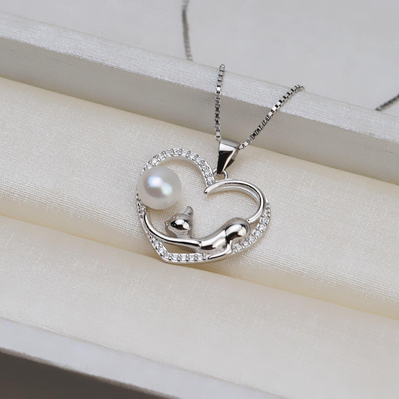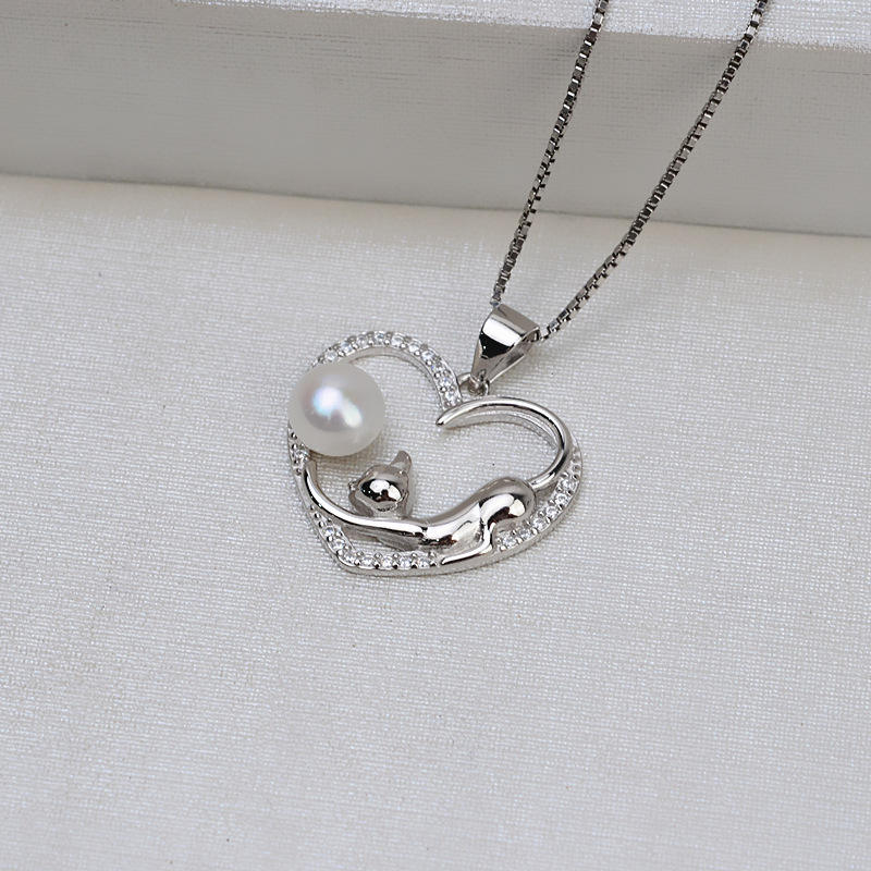 Colgante de Plata S925, 7-8, Diseño de Mono Pesca Luna, Bandeja de Joyería DIY Vacía, Accesorio con Perla Incrustada 1476