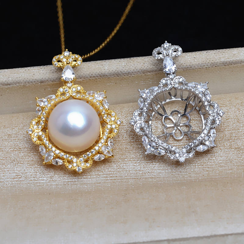 Base de Plata S925 para Colgante, Accesorios para Perlas DIY, Soporte Vacío de 13-14 Pulgadas para Perlas, Producto Semiterminado