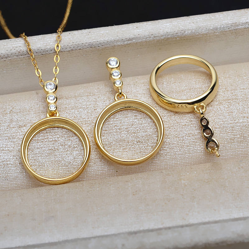 Set de Accesorios para Hacer Joyas, Soporte para Pendientes de Plata S925, 4889, Base Plana Hueca para Perlas de 12mm, Soporte para Cuentas, Tapas para Cuentas