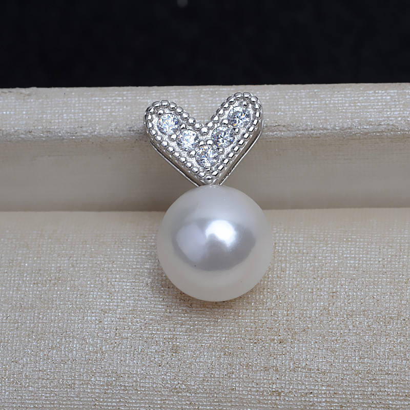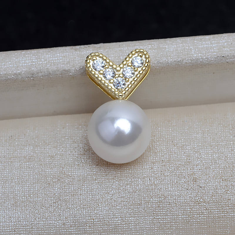 Colgante de Plata S925, Accesorio Hecho a Mano, Colgante de Aguja Recta en Forma de Corazón, Base Vacía para Perla de 9-14 mm, 4186, Aleación, Piedra Preciosa