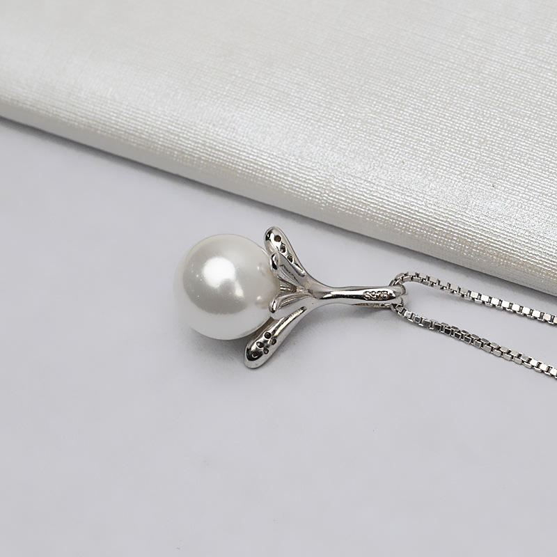 Collar con Colgante de Plata S925 para Mujer, Accesorio de Joyería DIY con 10-12 Cuentas de Perla Incrustadas, Diseño de Sombrero de Cinco Puntas, Base Hueca 736