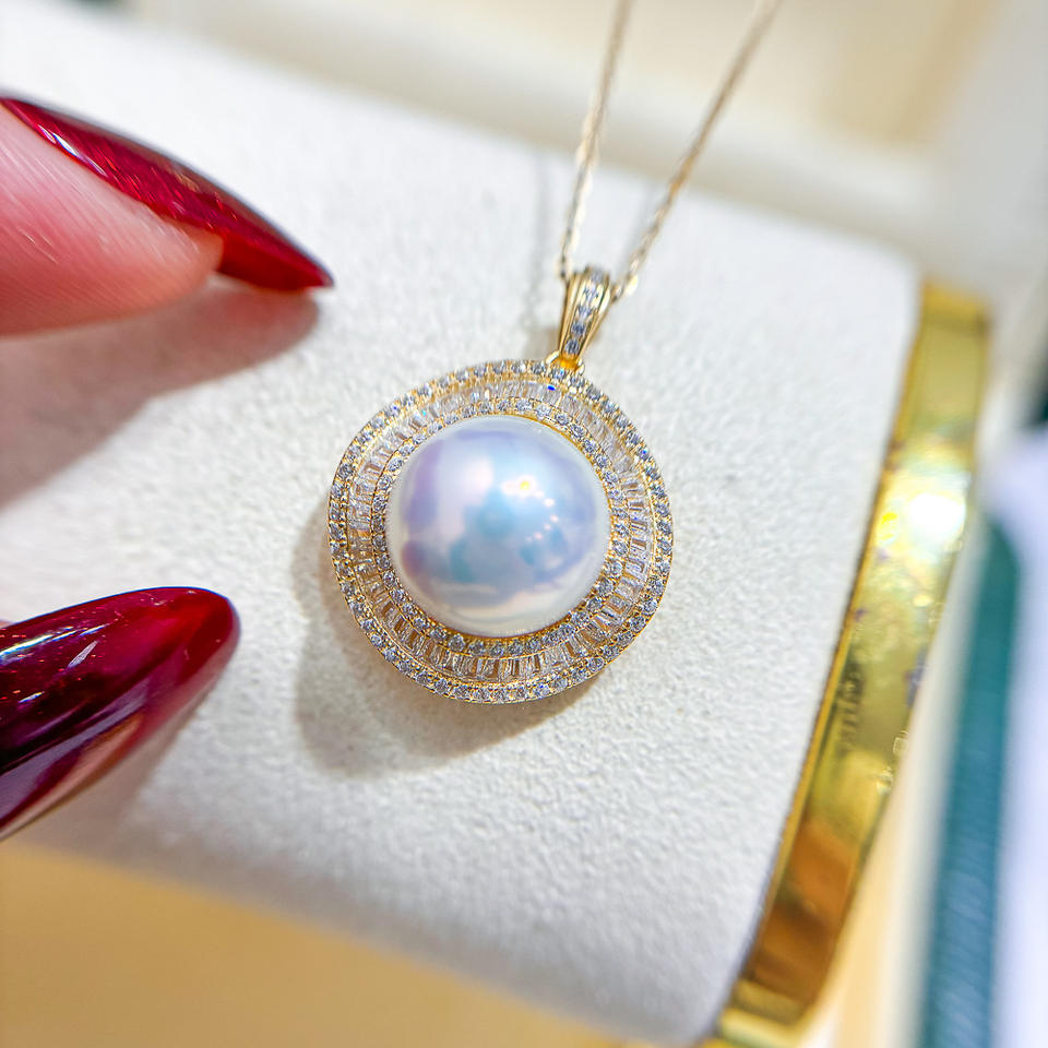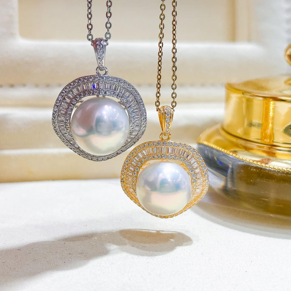 Collar con Colgante de Plata S925 con Cuentas Redondas de 10-12 mm, Accesorios de Perlas para DIY, Base Vacía, Hermoso para Hacer Joyas 31074