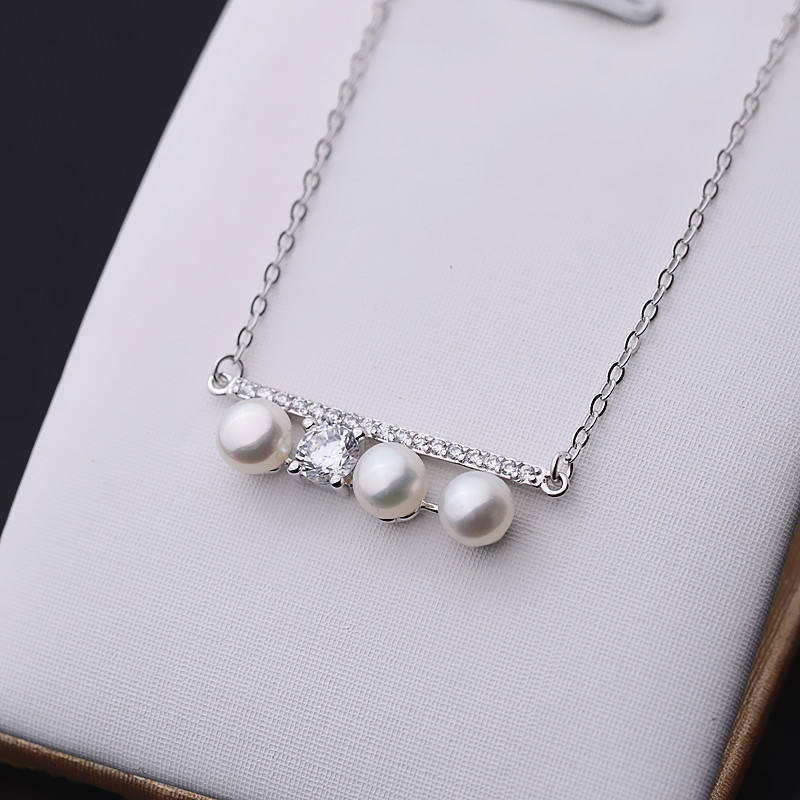 Collar con Colgante de Plata S925 con 3 Madera y 5.5-6 Perlas, Accesorio Femenino DIY, Cadena Fina 284