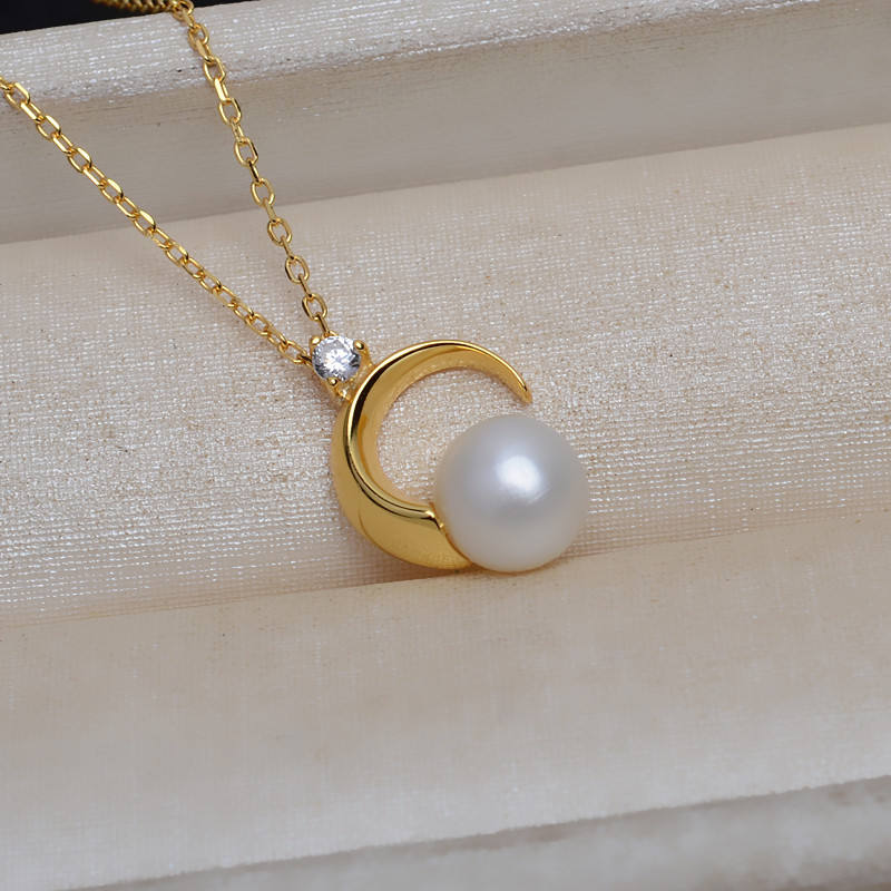 Collar con Colgante de Plata S925 con Perla Lunar de 7-9 mm, Juego de Colgantes Vacíos para Accesorios de Joyería DIY 4156