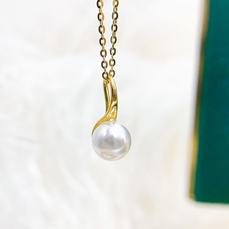 Collar con Colgante de Plata S925 con Cuentas Redondas de 7-9 mm, Accesorios Simples para DIY, Base Vacía 30875, Collar de Perlas