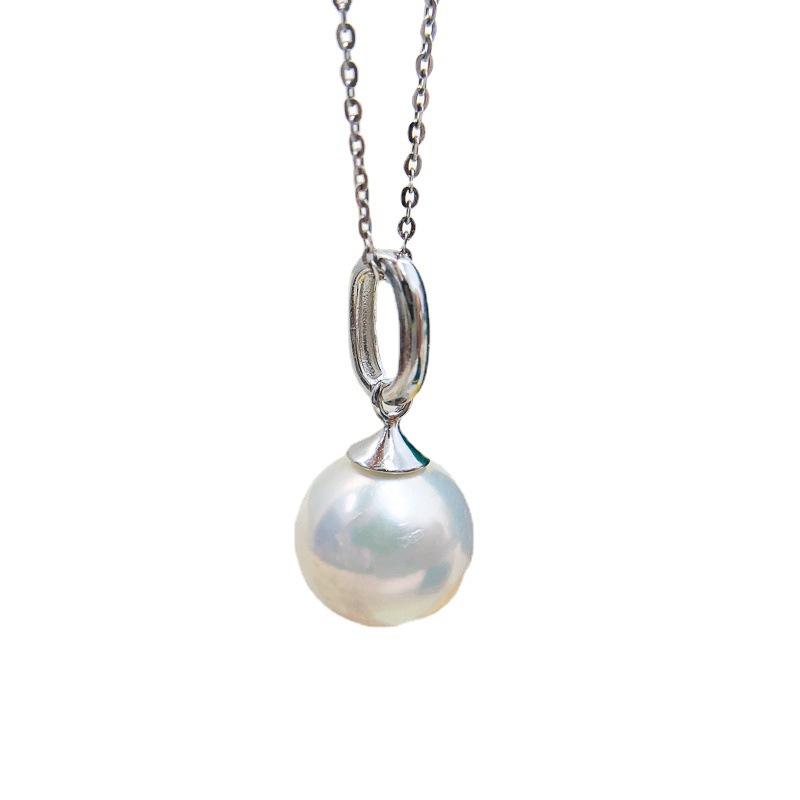 Colgante de Plata S925 con Cuentas Redondas de 10-15 mm, Accesorios de Perlas para DIY, Colgante de Moda para Collar, Base Chapada en Oro 30869