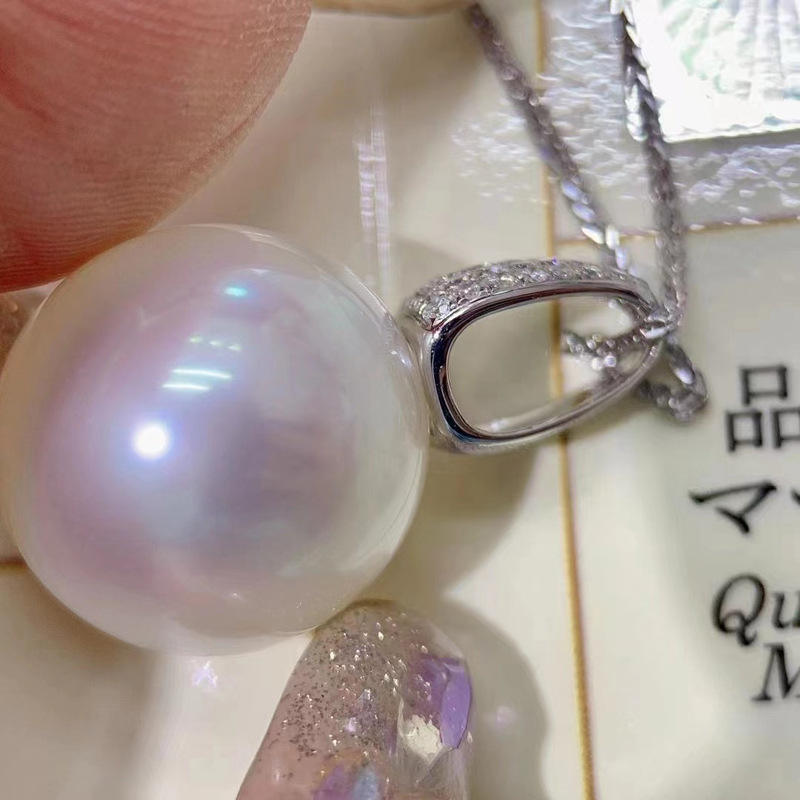 Colgante de Plata S925 con Cuentas Redondas de 8-13 mm, Soporte para Collar de Jade, Accesorios de Moda DIY 30933 con Perlas Sueltas