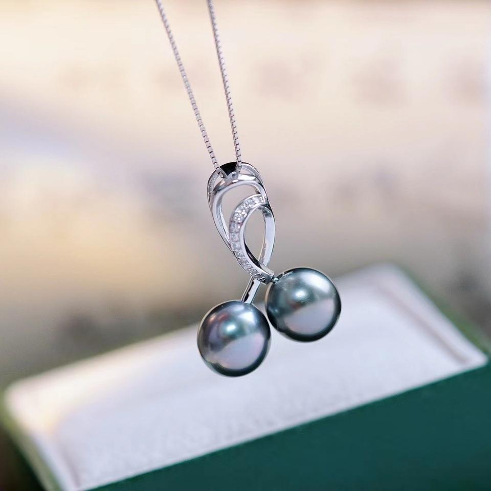 Colgante de Plata S925 con Cuentas Redondas de 9-11 mm, Accesorios de Perlas para DIY, Base Vacía de Oro Blanco, Collar de Doble Cuentas 31139