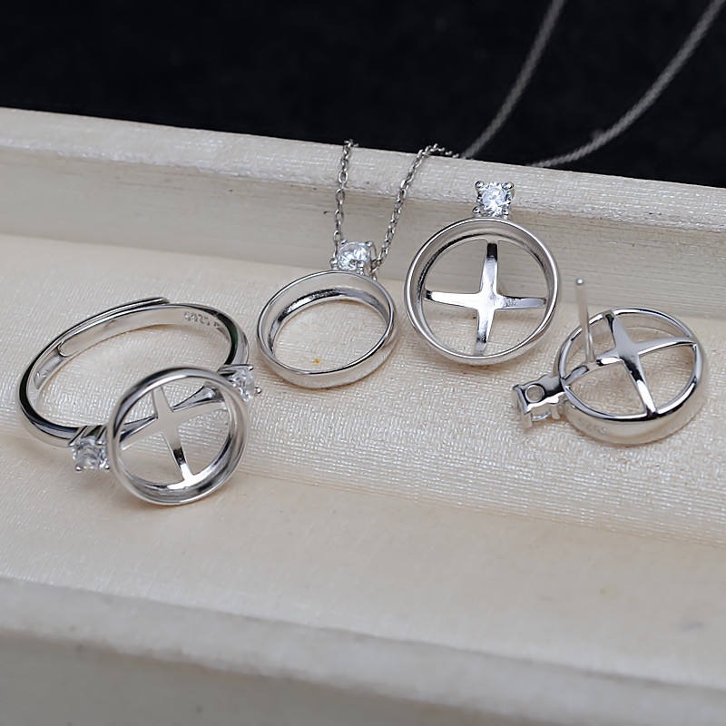 Conjunto de Colgante y Anillo de Plata S925 con Perla de 10.5 mm y Bandeja Vacía Mabel de 11.5 mm para DIY, Accesorios de Joyería de Moda, Artículo 4096