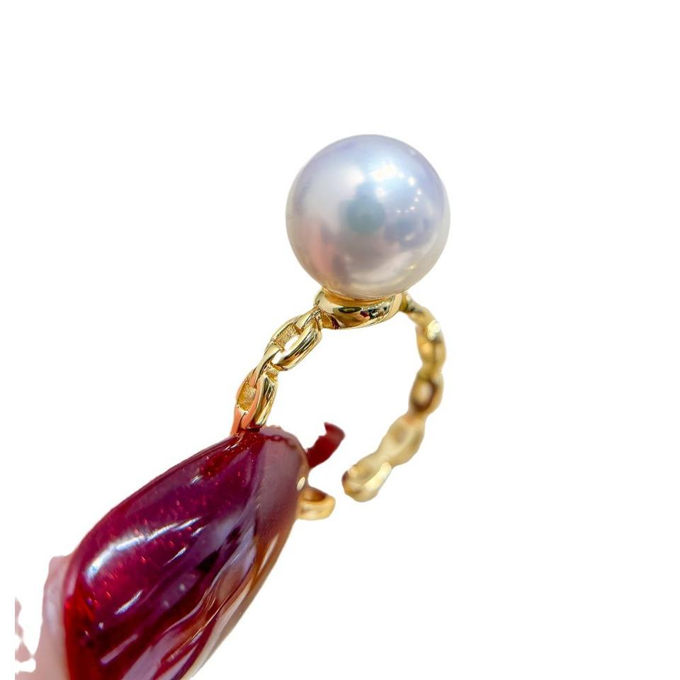 Anillo de Plata S925, Accesorio para Joyería DIY, Soporte para Perlas de 6-8mm, Edición Hoja Vacía, Anillo 1941