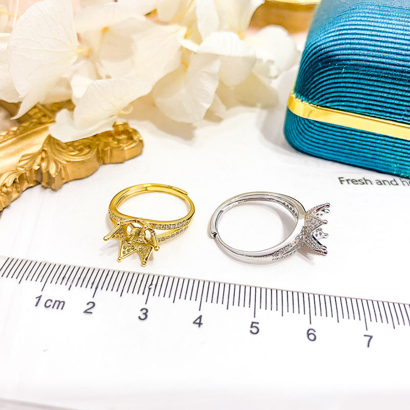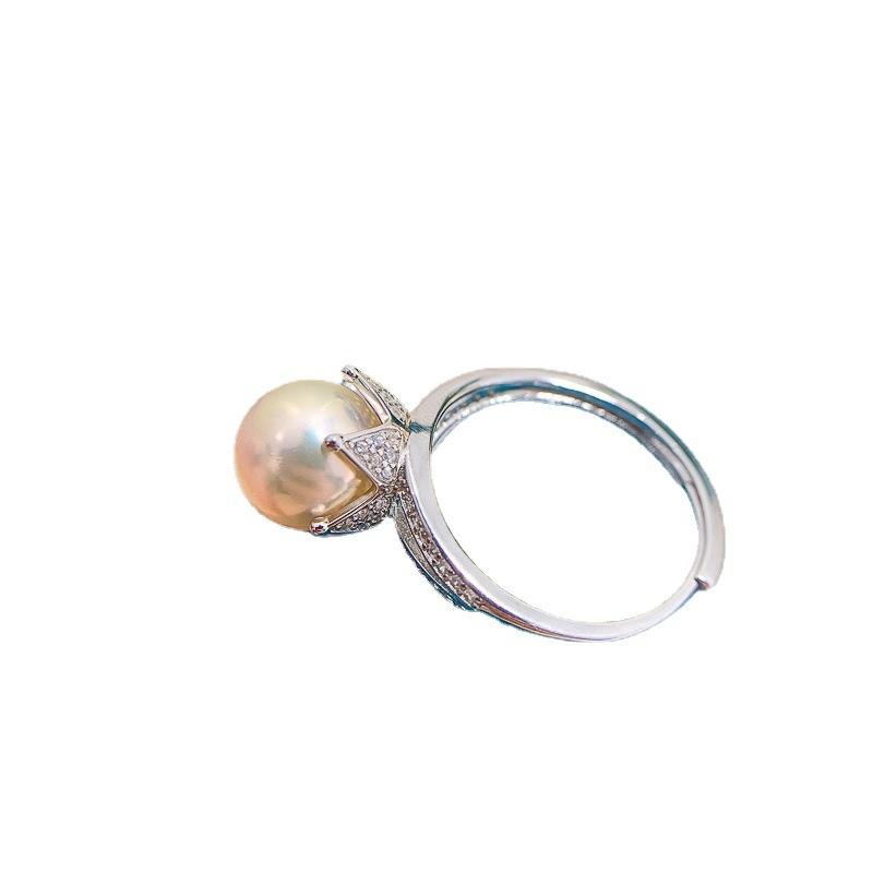 Anillo de Plata S925, Accesorio para Joyería DIY, Soporte para Perlas con Cuentas Redondas de 11-13 mm, Diseño de Pluma, Modelo 10384