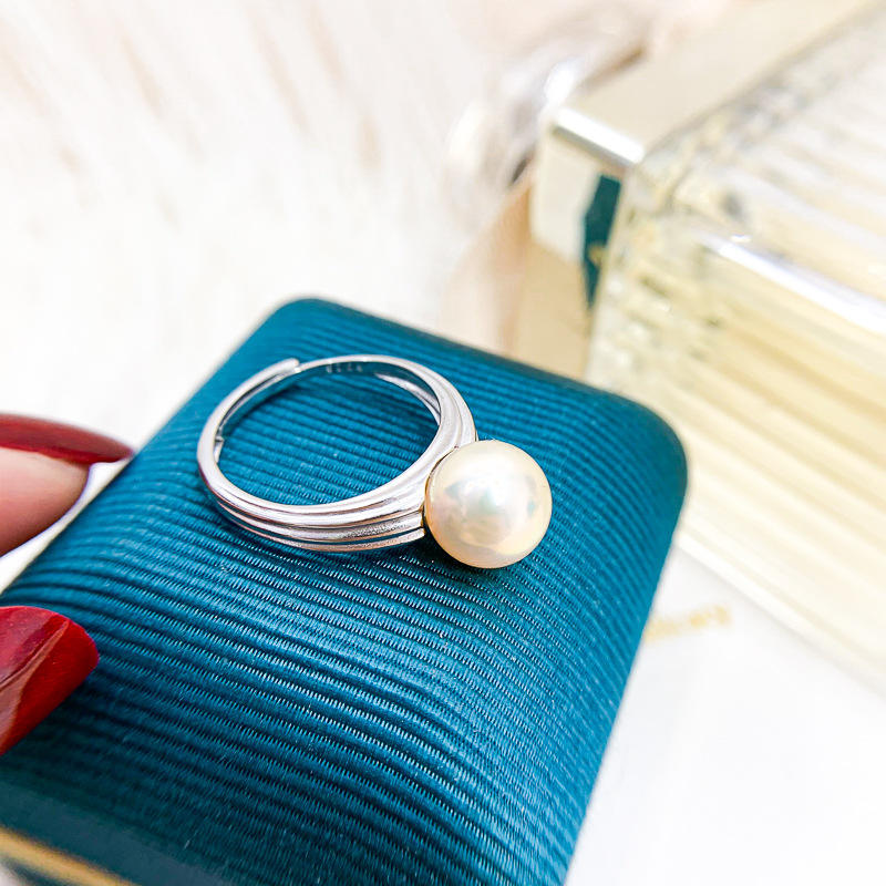 Anillo de Plata S925 con Cuentas de 10-12 mm, Accesorios de Perlas para DIY, Anillo de Edición Ligera, Conjunto de Joyería de Plata con Soporte Vacío 10133