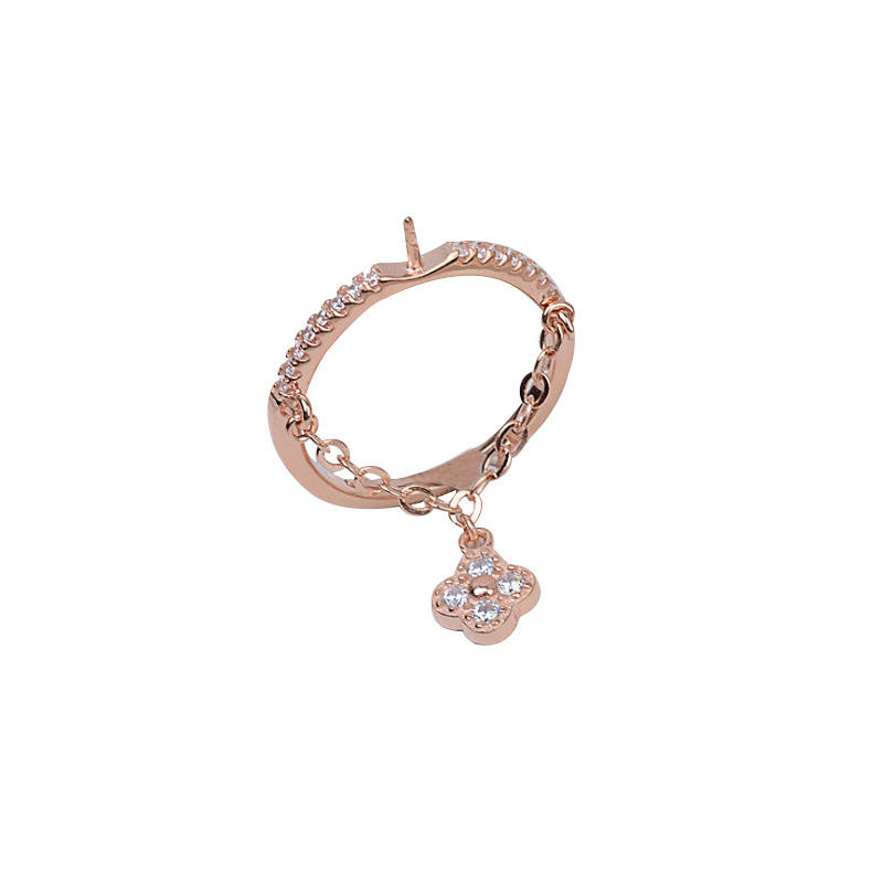 Anillo de Plata S925 con Baño de Oro de 18K, Diseño de Boca Abierta para Mujer, Incrustaciones de Perlas DIY, Cadena de Trébol de la Suerte y 7-8 Accesorios, Bandeja Vacía 238