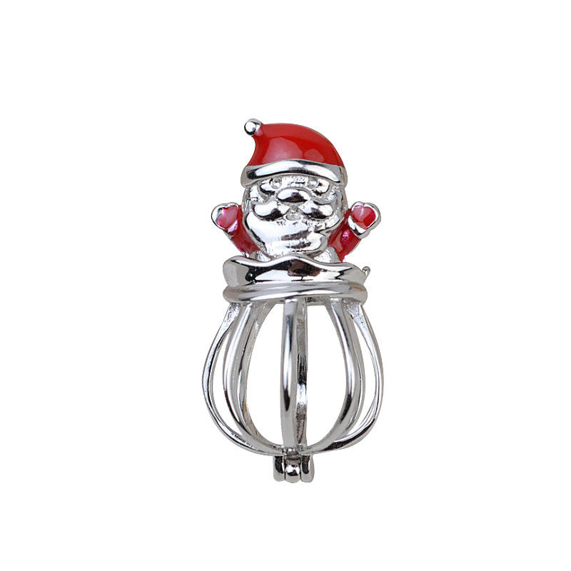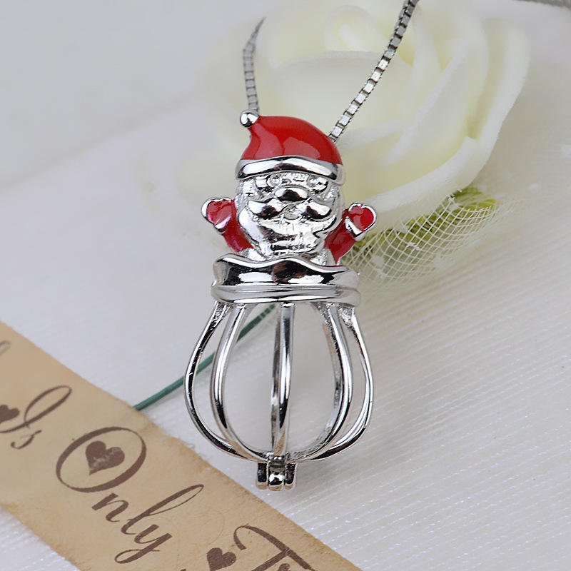 Collar con Colgante de Papá Noel de Plata S925, Accesorio de Moda DIY con Soporte Vacío para Perla sin Ojo de 8-11 mm, Modelo 2836