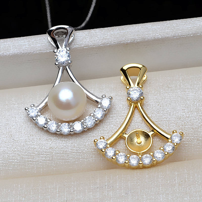 Colgante de Plata S925 con Forma de Dobladillo de Falda, con Perla Base de 9-10 mm, Accesorio DIY 3160, Colgante de Perla Semi-Acabado, Dijes y Colgantes de Perla