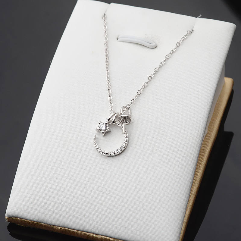 Collar con Colgante de Estrella y Luna de Plata S925 con Cadena para Clavícula, Conjunto de Joyería de Perlas DIY para Mujer, Accesorios de Moda