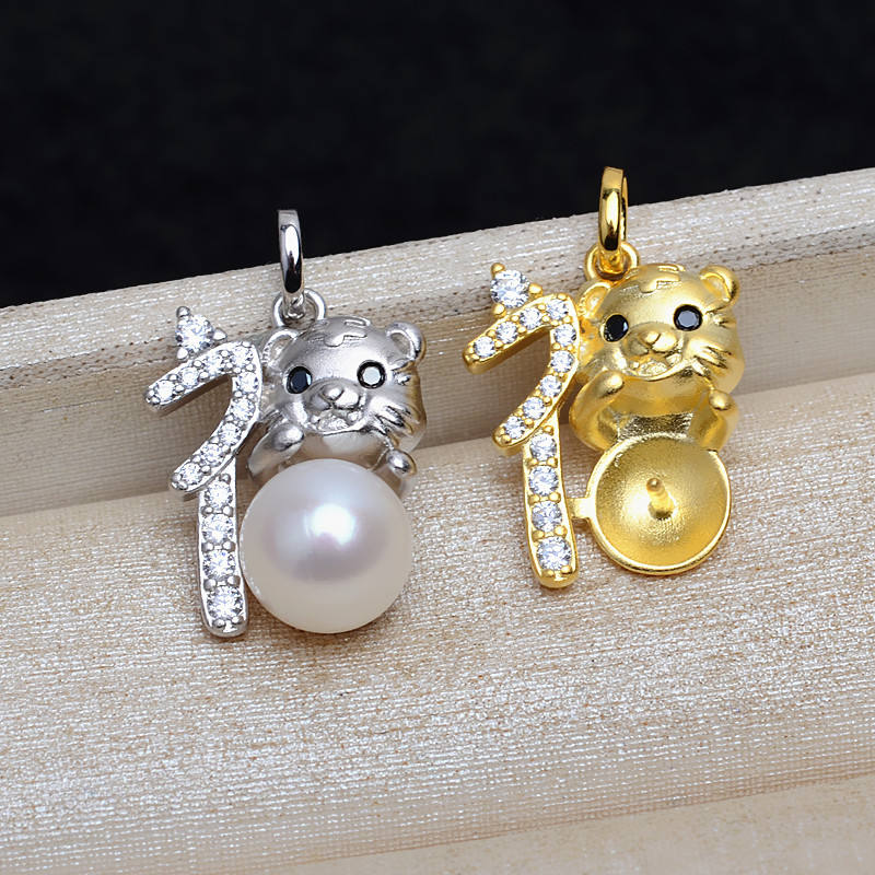 Accesorios de Joyería DIY para Mujer, Plata S925, Diseño de Cabeza de Tigre del Año del Tigre, Bandeja Vacía para 8-9 Perlas, Colgante del Zodiaco con Patrón de Tigre, 4897