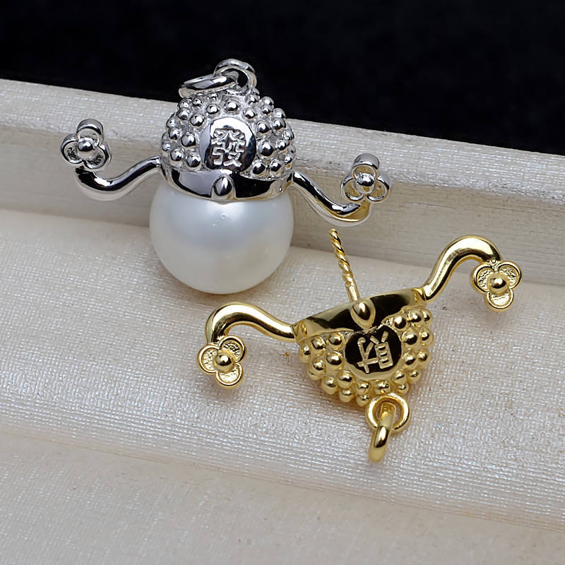 Colgante de Plata S925 con Diseño de Diosa de la Riqueza para Mujer, con Perla Barroca Grande de 13-17 mm, Base Vacía para Joyería DIY, Número de Artículo 4119
