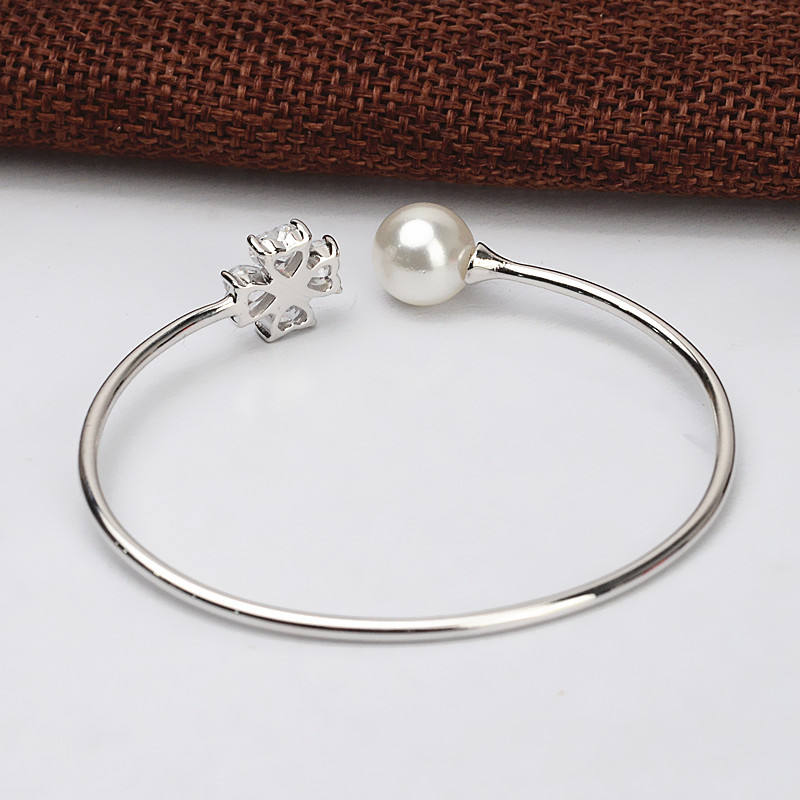Pulsera de Plata S925 para Mujer, Diseño Simple y Sólido, Trébol de la Suerte, Perla Personalizada, Accesorios DIY, Brazaletes Semi Modernos