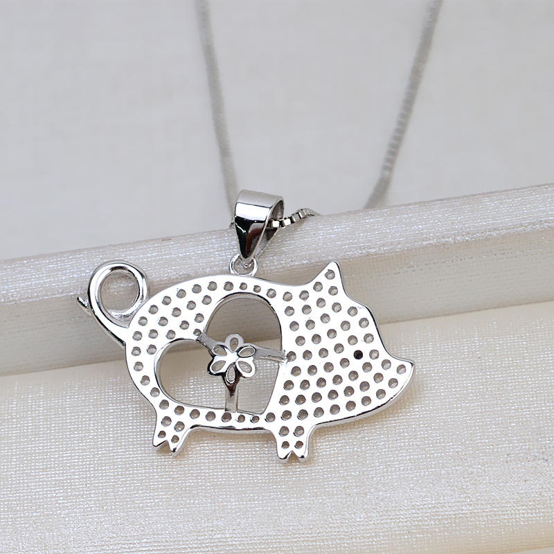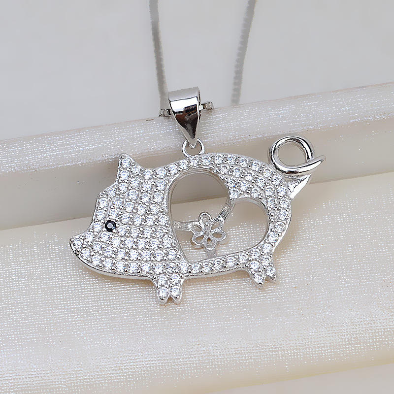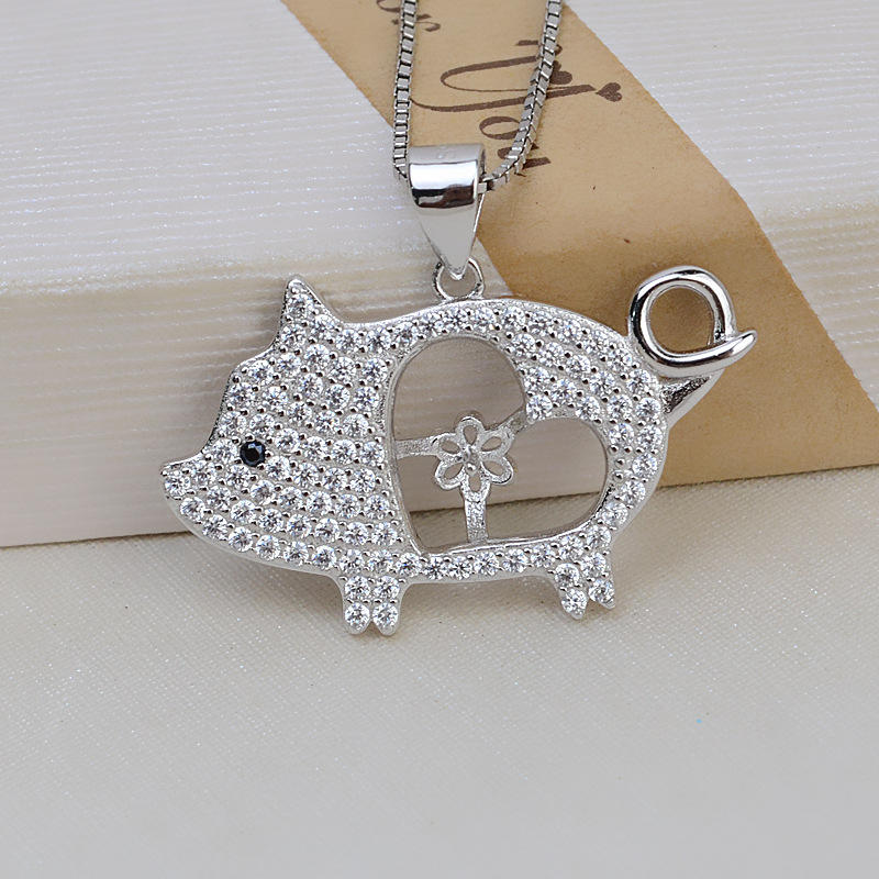 Colgante de Plata S925 con Diseño de Cerdo del Zodiaco, Perla, Cabello de Feto 7-8, Colgante para Mujer, Colgante Xiang, Accesorios de Joyería DIY, Bandeja Vacía 2050