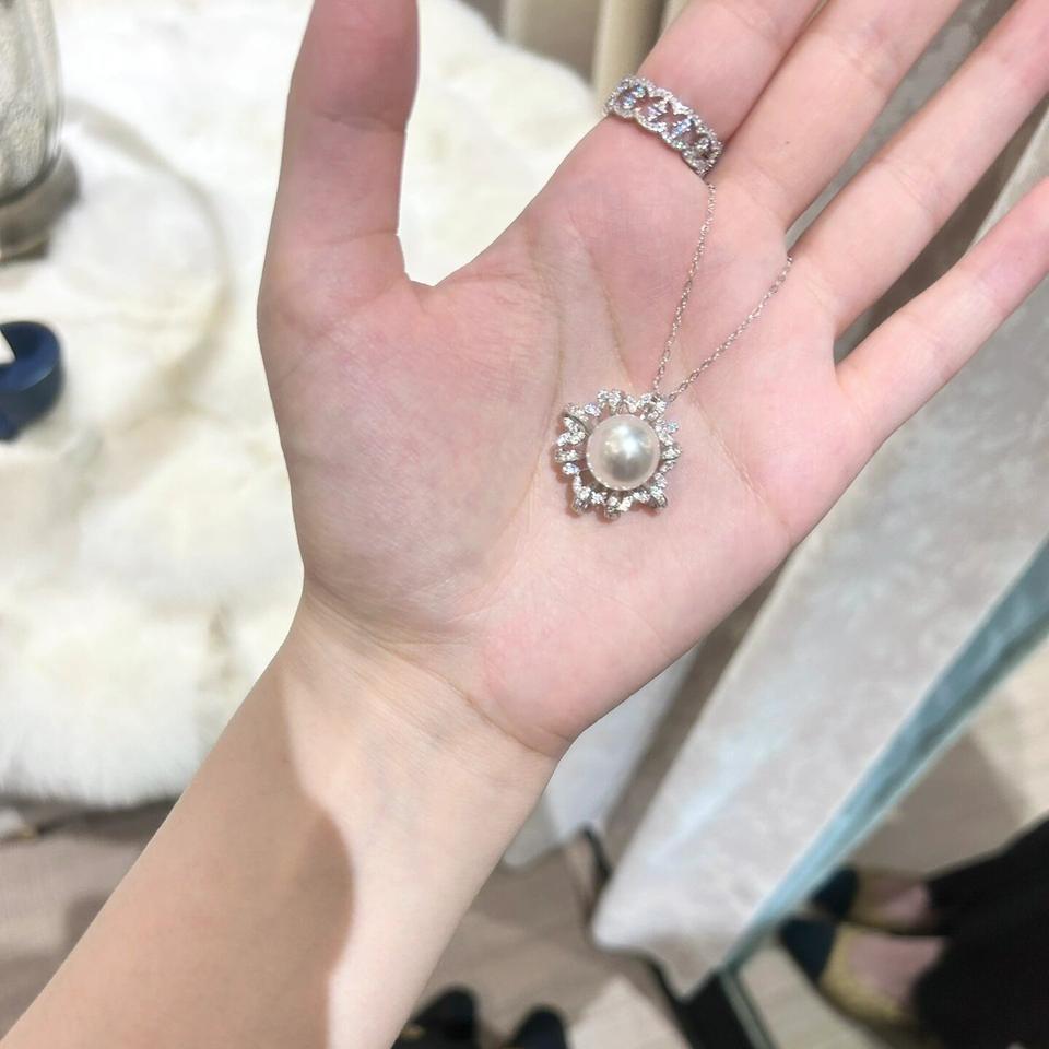 Collar con Colgante de Diamante en Forma de Corazón de Plata de Ley S925 con Cadena de Clavícula y Dije de Perla Artificial de Alta Gama