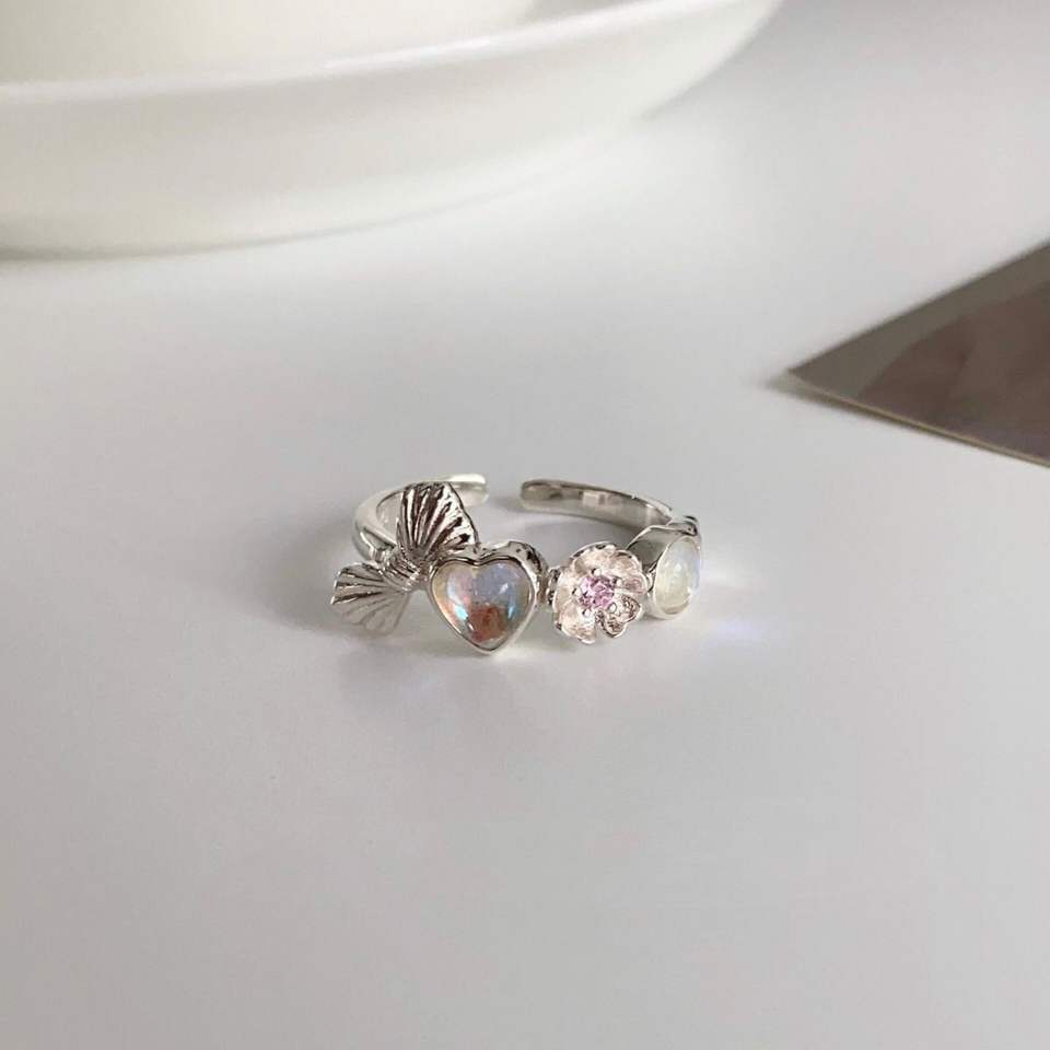 Anillo de Plata de Ley S925 con Lazo y Ópalo para Mujer, Moderno, Chapado en Oro de 18K, Diseño Romántico de Alta Gama con Incrustaciones de Diamantes