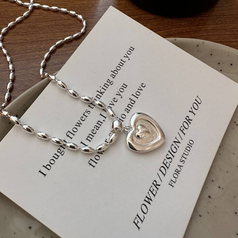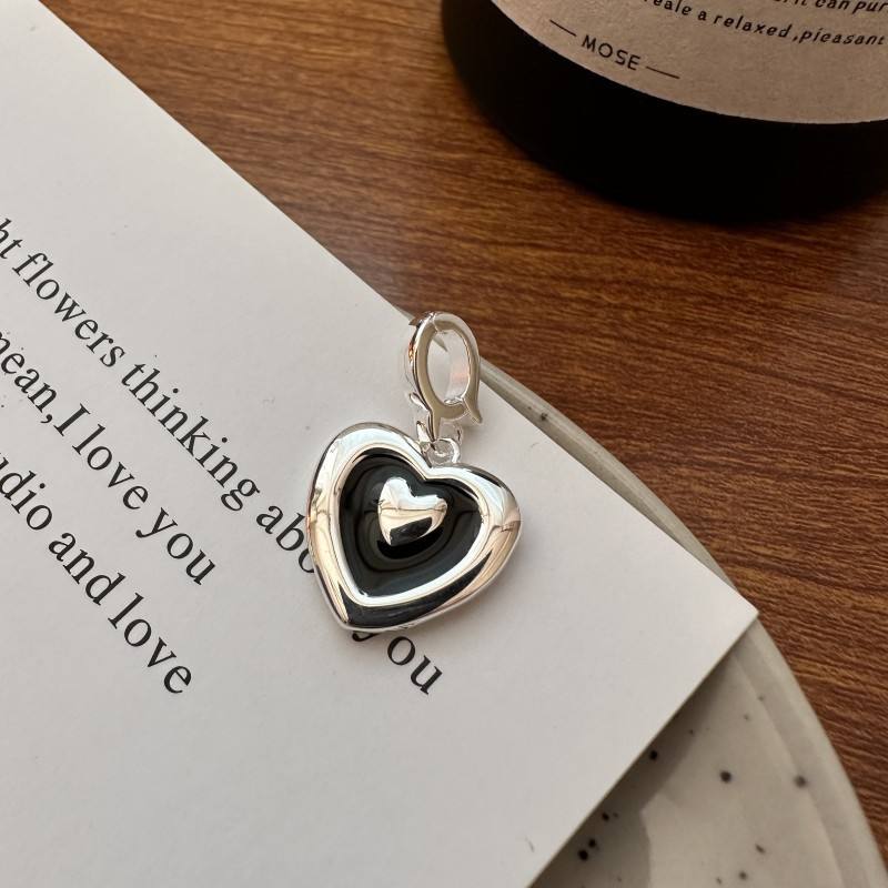 S925 plata esterlina fina colgante collar moda coreana nicho diseño goteo esmalte negro amor lado colgante al por mayor