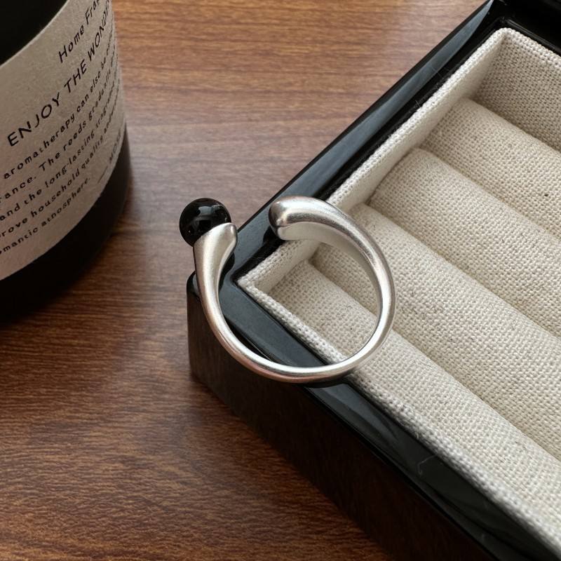 Anillo de ágata negra esmerilada de plata esterlina S925 estilo coreano moda textura Simple al por mayor para minoristas y clientes