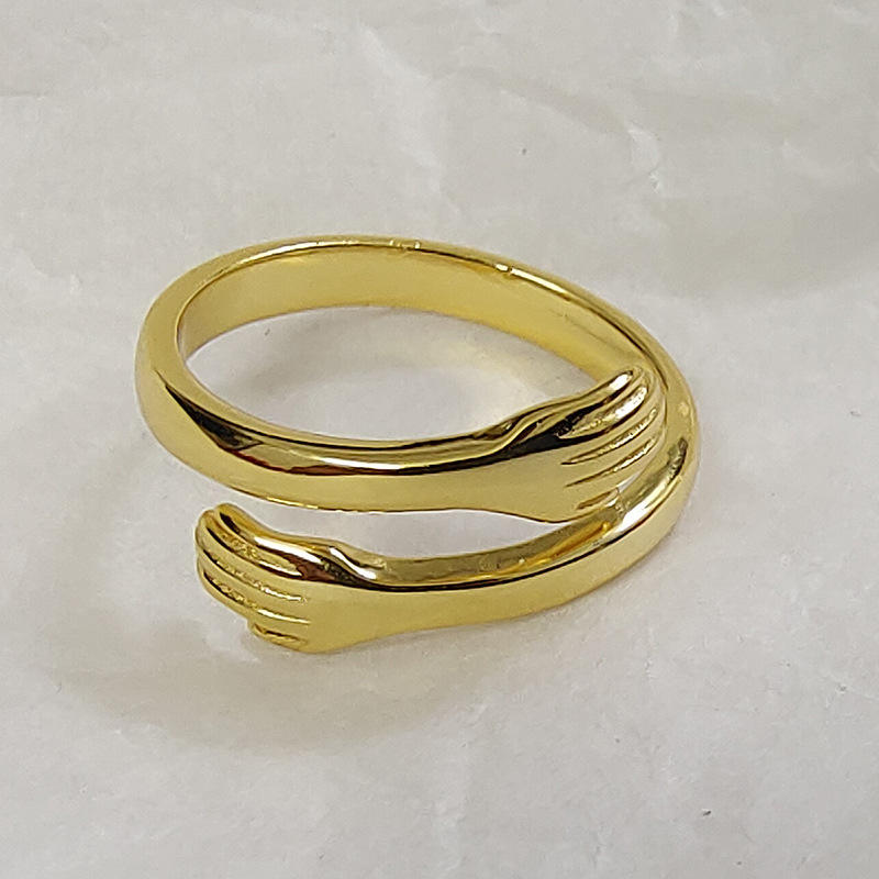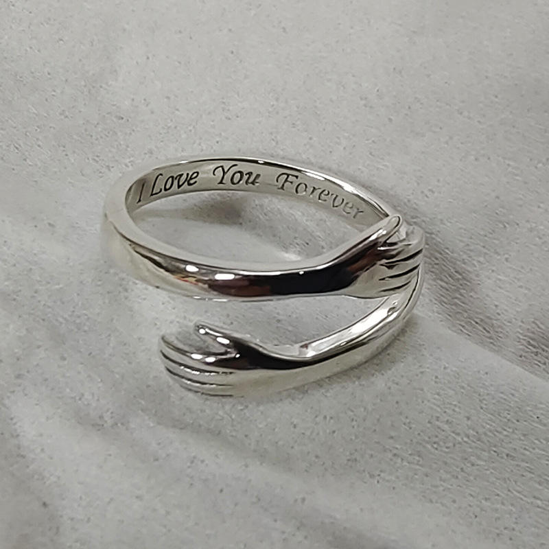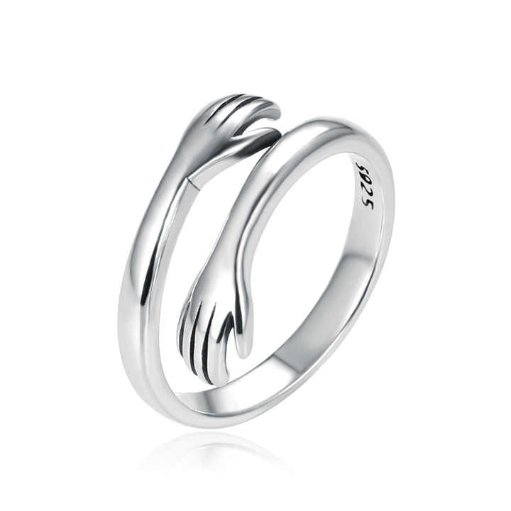 Anillos de plata de ley S925 para pareja, anillos de mano para abrazar, banda ajustable, joyería, anillo de amor para siempre, regalo