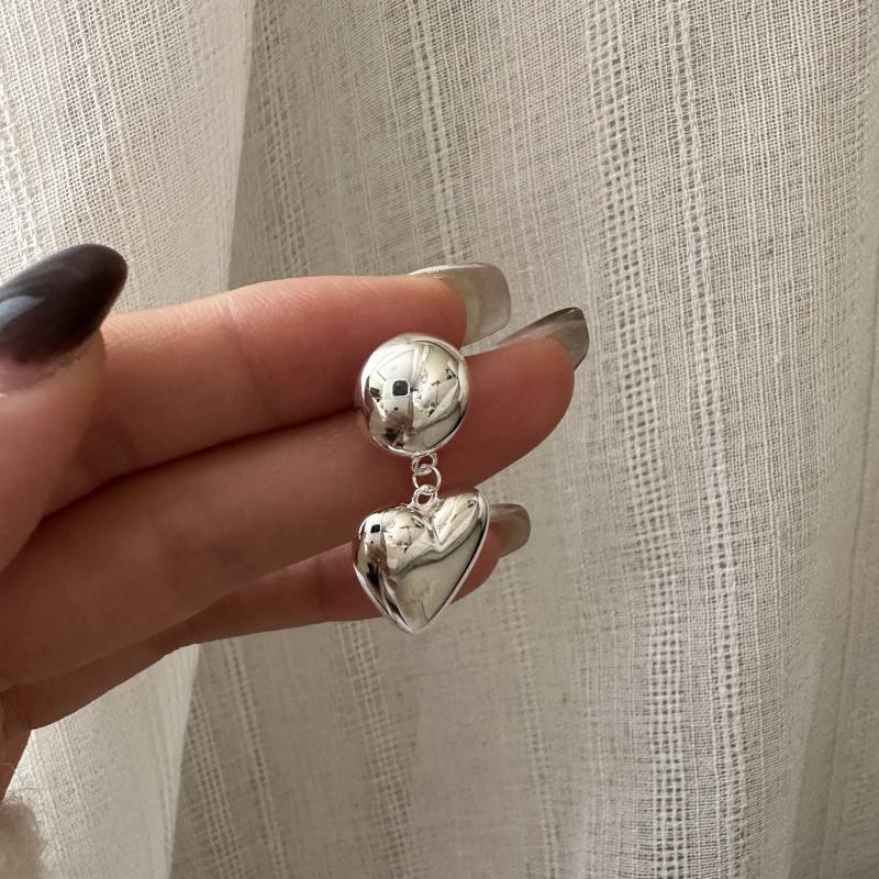 Pendientes de Bola de Amor de Plata de Ley S925, Versión Coreana, Diseño de Nicho, Estilo Retro Simple, Accesorio de Moda