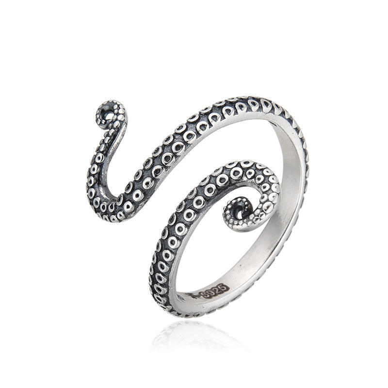 Anillo Abierto de Pulpo de Plata de Ley S925 para Mujer, Estilo Vintage, Diseño Punk, Anillo Único de Animal Marino